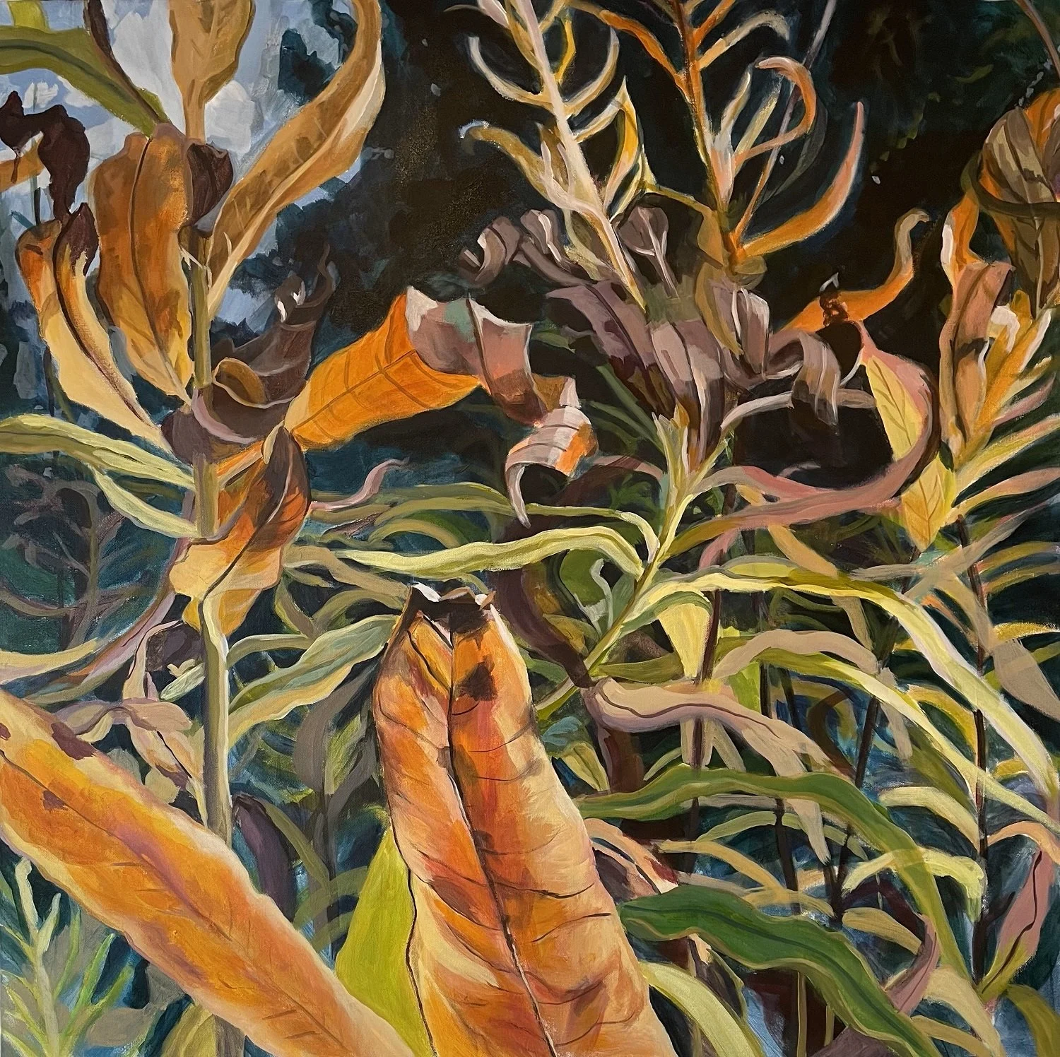 I proceeded to work a bit differently than I have before to really make a cohesive body of work for the exhibition. What I did was assess what space I need to fill and then worked backwards from there to choose another set of paintings to create at particular sizes. I then retrospectively included them in the Fireweed series I made in sequence during summer and autumn of 2023. It has been interesting to play with how I was able to sort of time travel back to various times last year while I was painting, but also to notice the inevitable effect on the new paintings of my actually having moved on from then in reality.